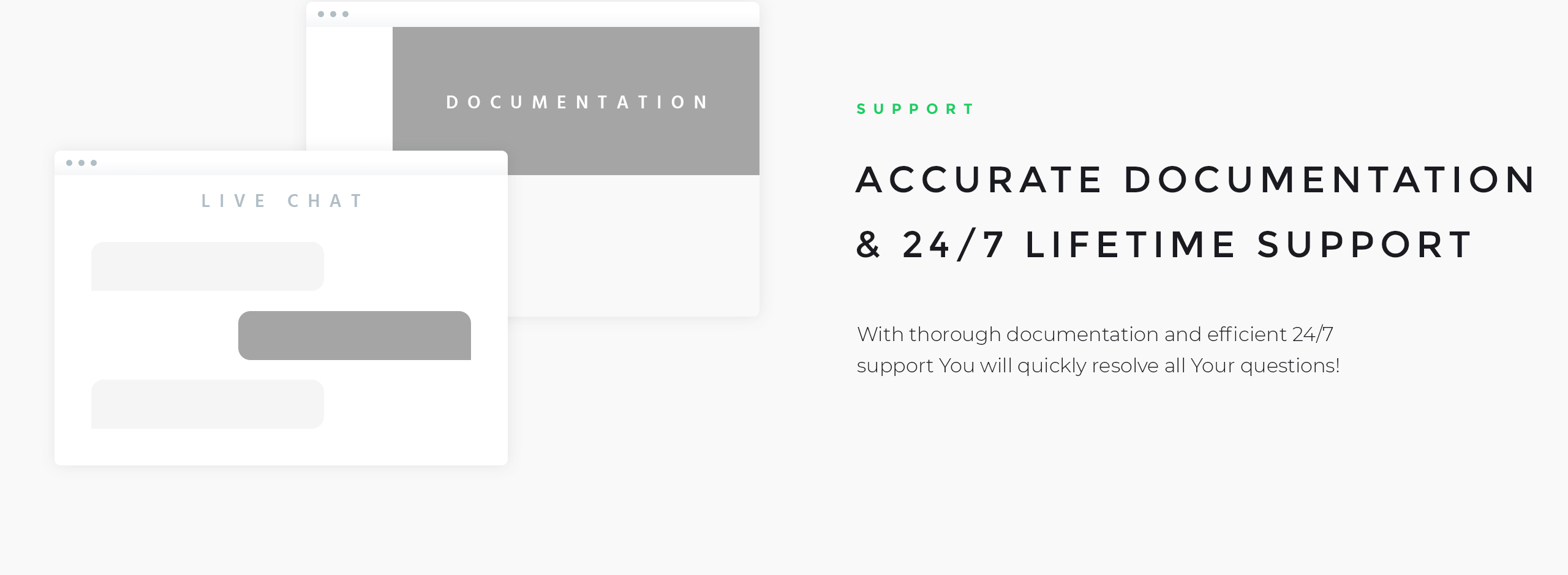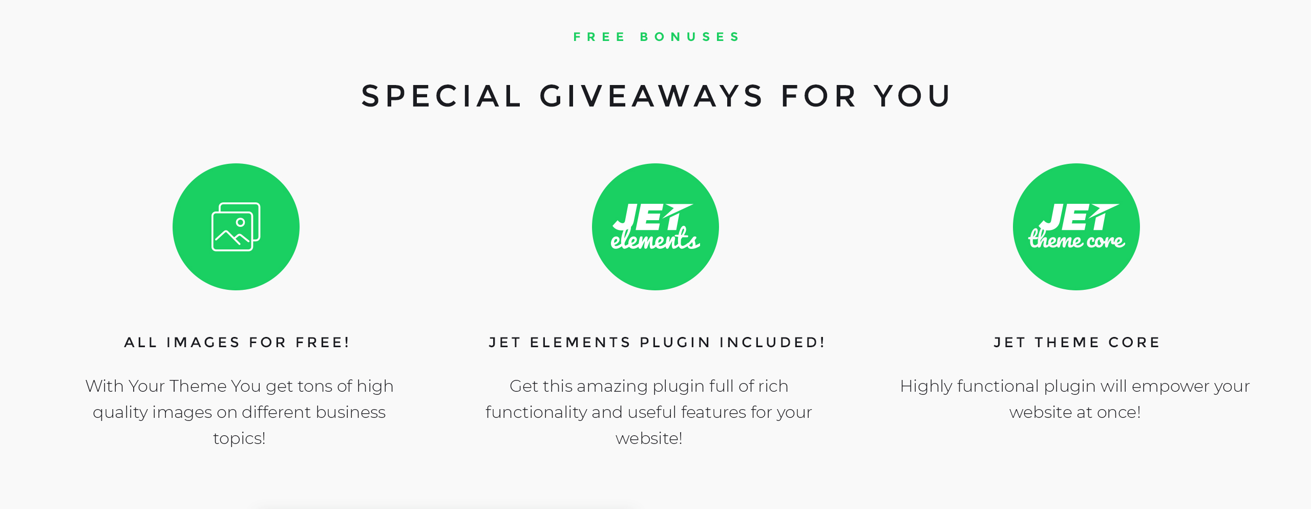 Trusted Elements: Free Support, Stock Photos, Satisfaction Guarantee,